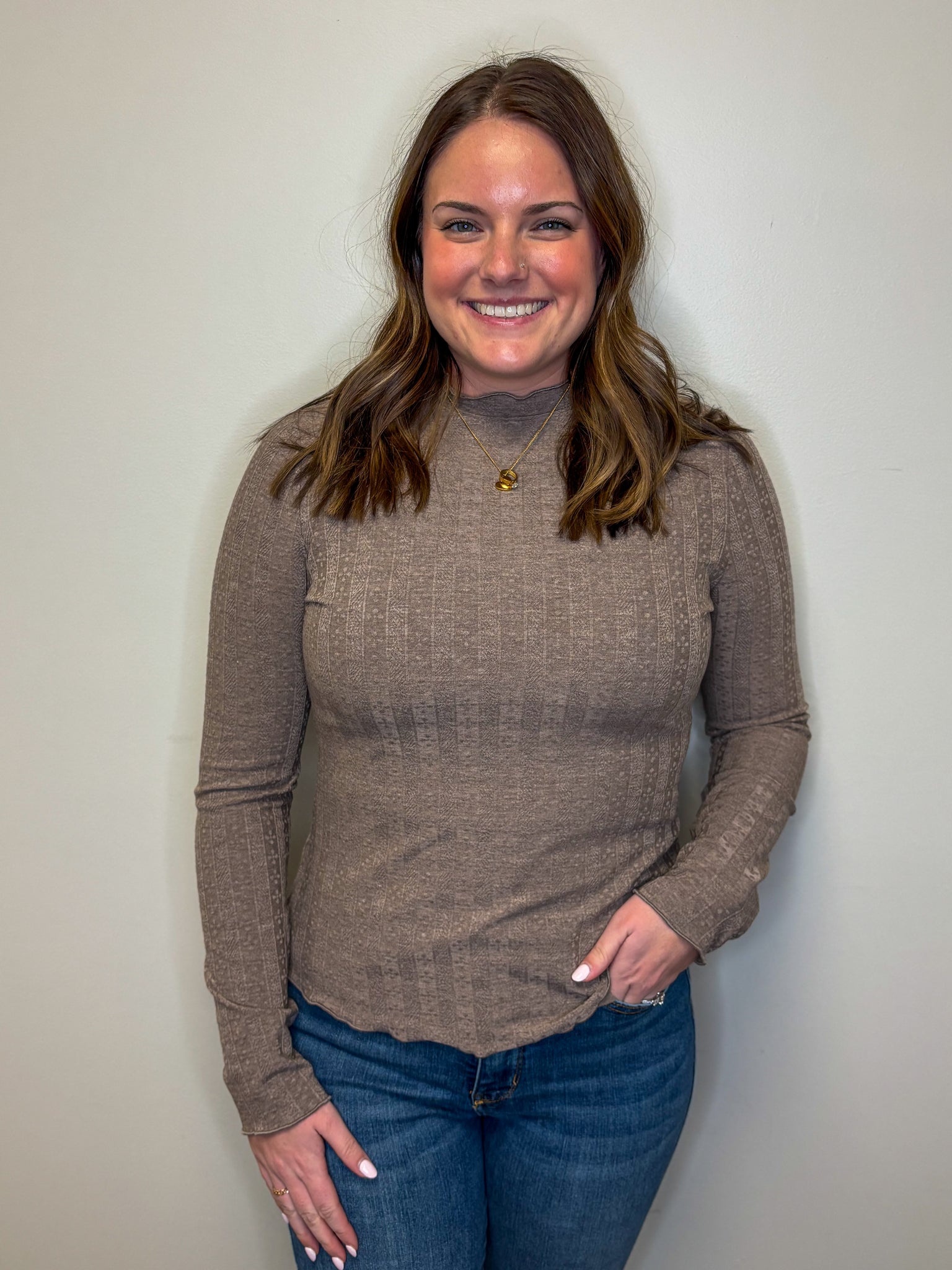 Elevate your wardrobe with the As You Call It Top, a sophisticated long-sleeve piece featuring a distinctive scalloped mock neck. Available in versatile black or warm bean hues, this top offers a refined silhouette ideal for layering or wearing alone. Its sleek design combines comfort with subtle elegance, making it perfect for both professional settings and casual outings.