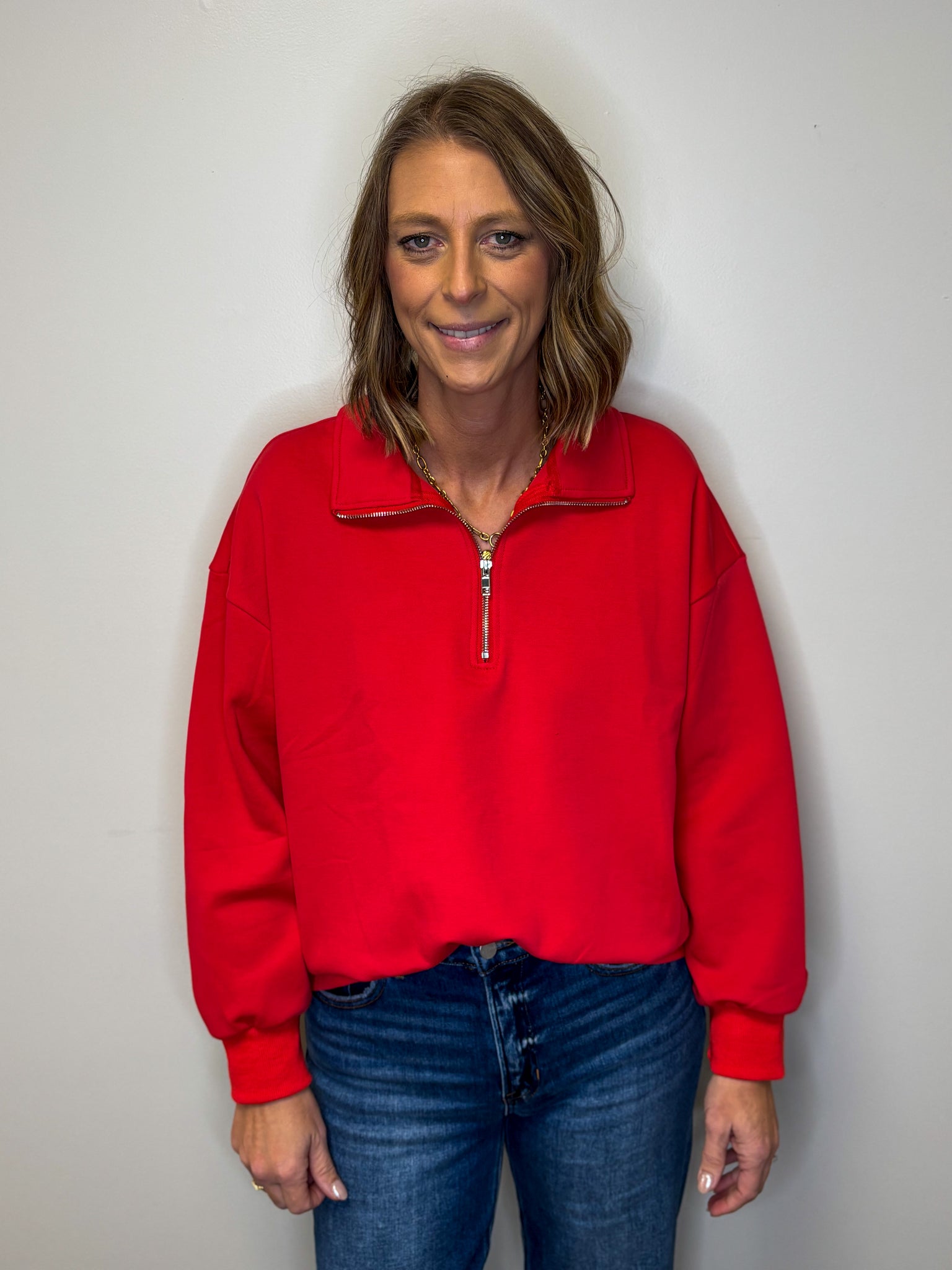 Elevate your casual wardrobe with this versatile half zip sweatshirt, crafted from a premium blend designed for comfort and durability. The body features a thoughtful mix of 80% cotton, 13% polyester, and 7% spandex, offering breathability with gentle stretch for all-day wear. The 100% cotton collar provides a classic, structured finish. Available in rich green and red colorways, this piece transitions seamlessly from weekend lounging to layered styling. It demonstrates the relaxed fit of the small size. Whether you're reaching for it on cool mornings or pairing it with your favorite layers, this sweatshirt delivers understated sophistication with practical comfort.