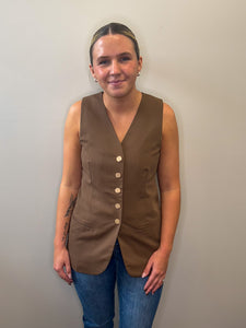 This Solid Classic Vest in espresso color is a must-have for any wardrobe. Made with a lined and lightweight woven fabric, it features faux pockets for added style and versatility. Non-sheer and button-up, this vest is perfect for both casual and formal occasions.